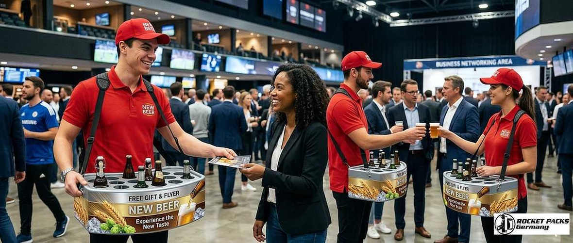 - Hawker’s promotions tray team in action, delivering high-impact brand visibility and face-to-face engagement in crowded event environments, retail spaces, and public activations.