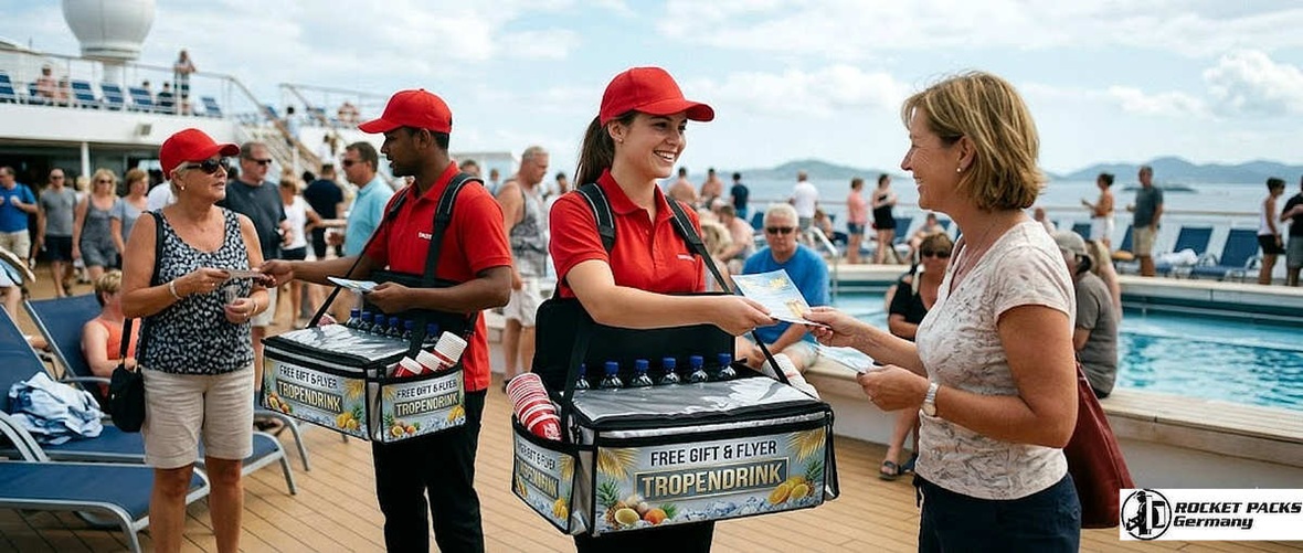- Equipped with ergonomic, custom-branded mobile trays, the team moves effortlessly through foot traffic, offering samples, promotional materials, or beverages directly to consumers.